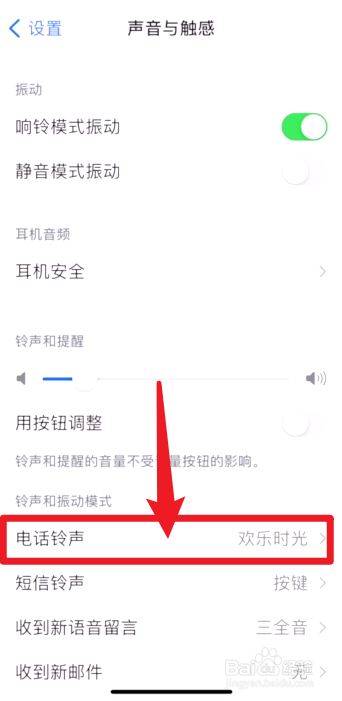 然后点击电话铃声。