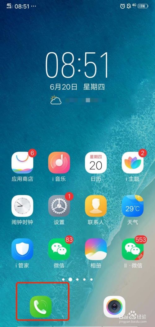 1、在手机主界面找到【电话】图标。