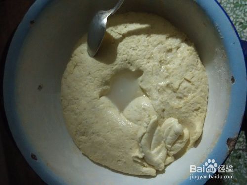 将碱和小苏打和好的水放入面中间,掺匀,然后揉好的面,闻起来没有酸味了,就可以开始揪几子,揉馒头了!