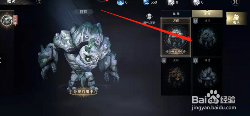 进入到魔灵外观页面,选择一个外观皮肤后,点击使用;