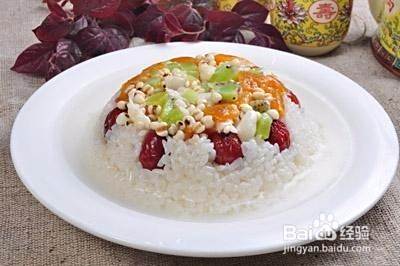 偶尔闲来无事,做一碗糯米饭。既养生又保健。糯米八宝饭的原料主要包括糯米,豆沙,枣泥,杏仁,莲子,桂圆,银杏果,山楂糕,葡萄干。