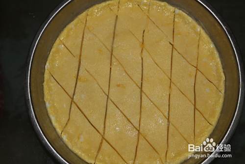 鸡蛋糕蒸好后,如图切开。