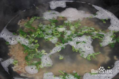 关火,加入香菜末,然后加入味精调味。