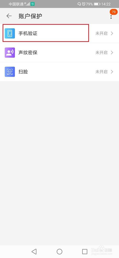 第四步在账户保护界面,点击手机验证