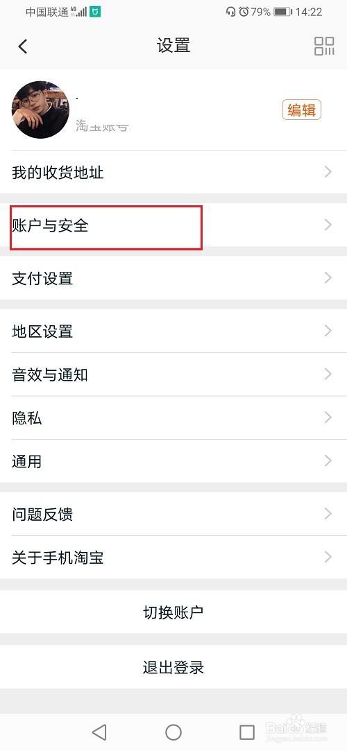 第二步进去淘宝设置之后,点击账户与安全