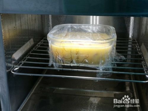 盖上保鲜膜,用牙签戳戳,放蒸炉里蒸13分钟