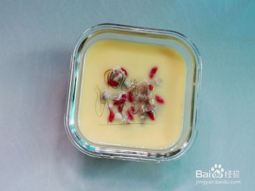 把蛋液倒入装白参菌的碗里,枸杞洗净撒上面,静置或直接戳掉泡沫