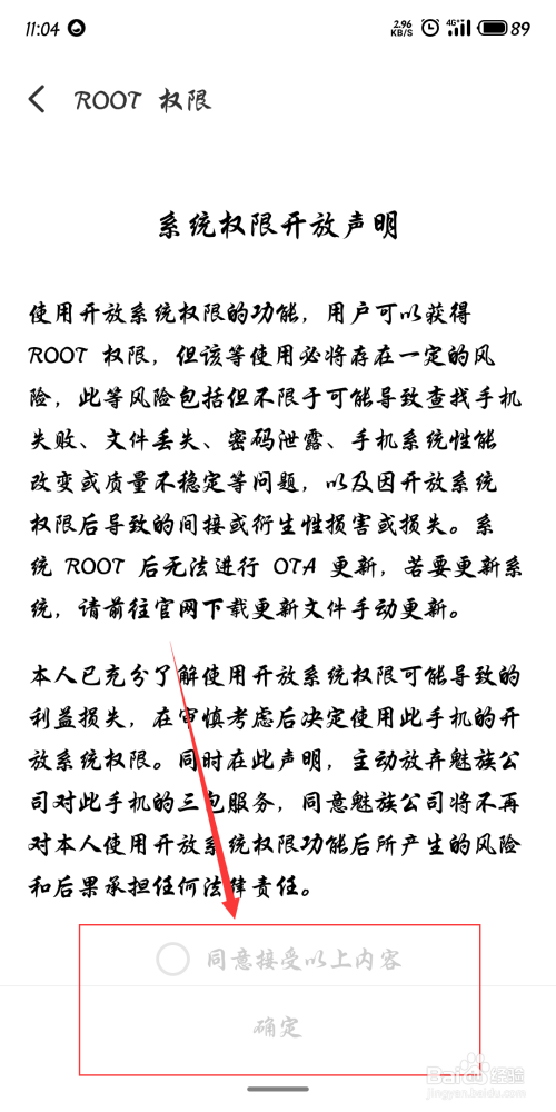 进入root权限确认界面,点击【我同意】后选择确定就可以开启手机的root权限,就是手机最高权限