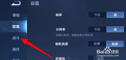 点击设置页面左边的战斗选项。