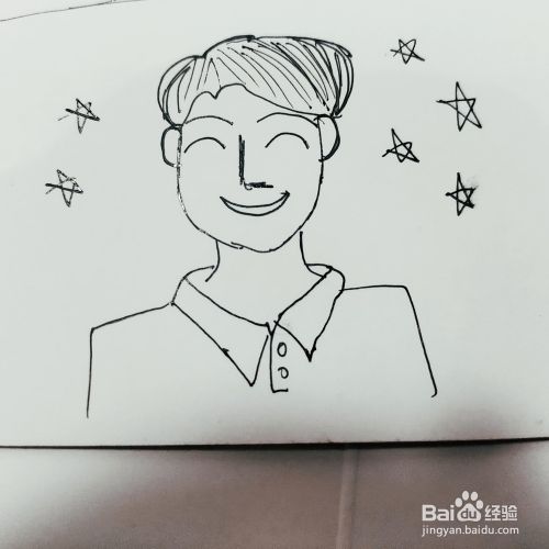 第七步,我们来画卡通绅士爸爸周边的小星星,作为点缀。