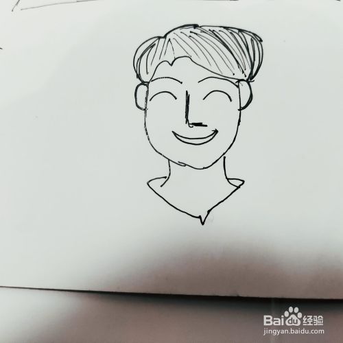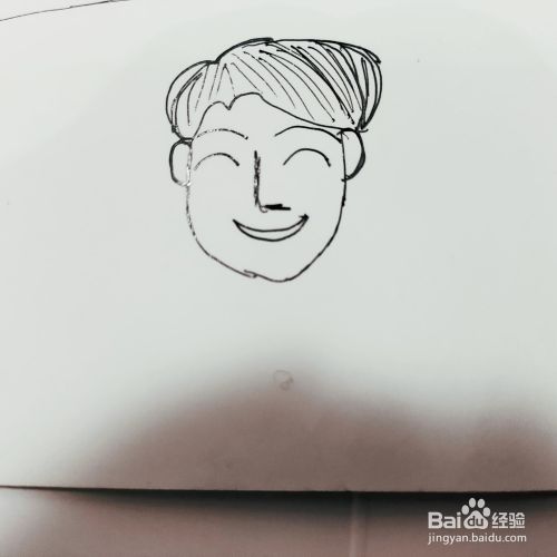 第三步,我们来画绅士爸爸的眼睛,和鼻子以及嘴巴部分,五官一勾勒出来,就很形象了。