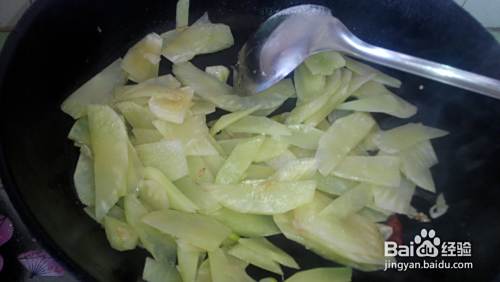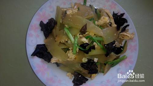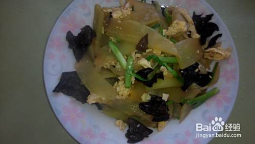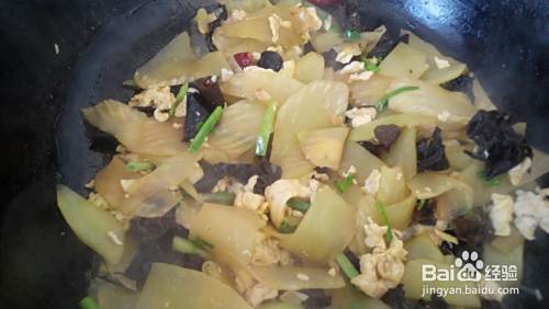 最后将黑木耳和蒜苗倒进去翻炒几下出锅。