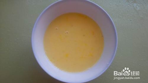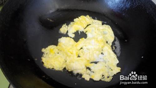 将2个鸡蛋打液,放在锅里面炒成7分熟。