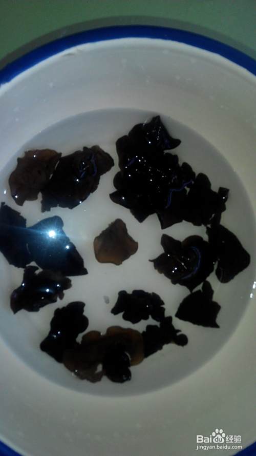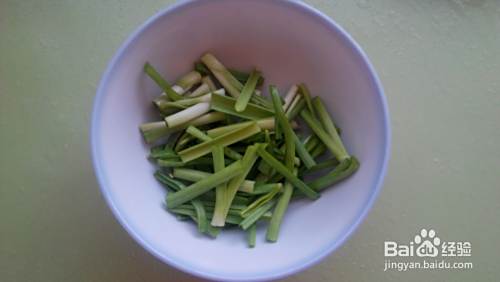 黑木耳泡开、洗净,蒜苗切成小段备用。