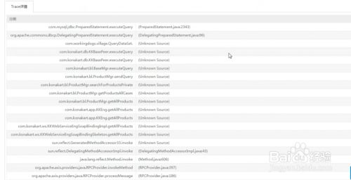 下方的Trace详情模块展示了这一条SQL的调用堆栈信息,包括具体的类名、方法名以及代码行等信息,从这一模块能够使我们了解到具体是哪行代码调用了这一条SQL,并且导致了数据库响应慢。