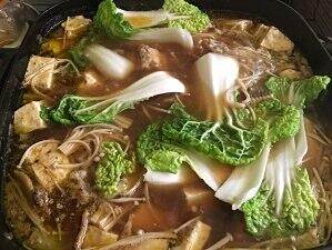 边吃边往锅里放些青菜。(这个锅是清汤锅,没放重庆火锅底料)