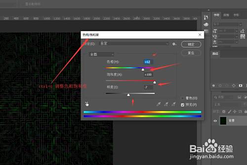 最后点击ctrl+u调出色相饱和度,调整颜色后,科技感线条背景就做好了。