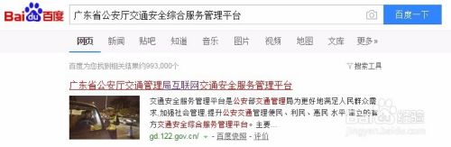 打开电脑浏览器,百度搜索“广东省公安厅交通安全综合服务管理平台”