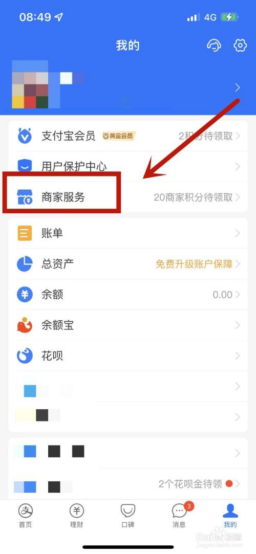 在支付宝我的界面找到商家服务选项。