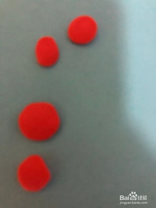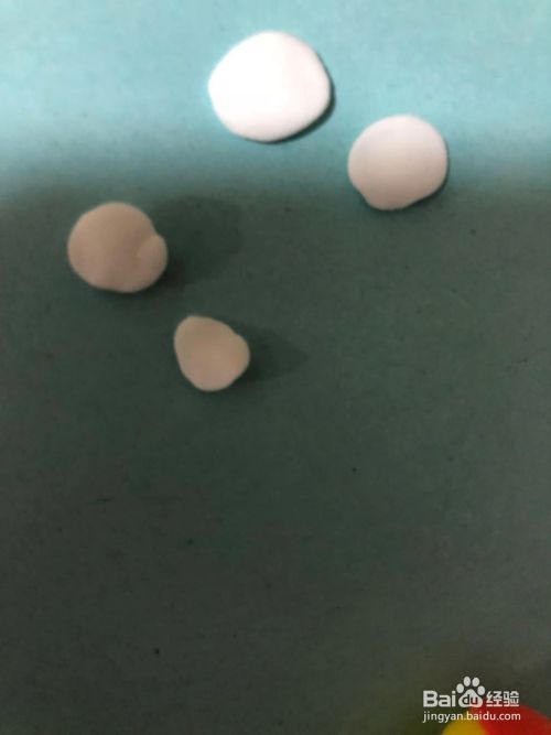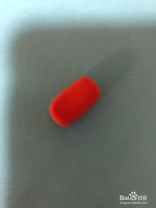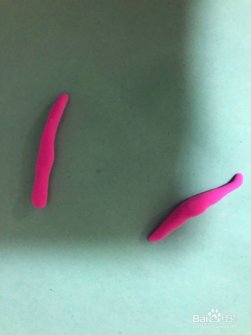 在拿出白色的彩泥揉成圆形按扁粘到红色两端上面。在拿出粉色的彩泥揉成两个小长条。