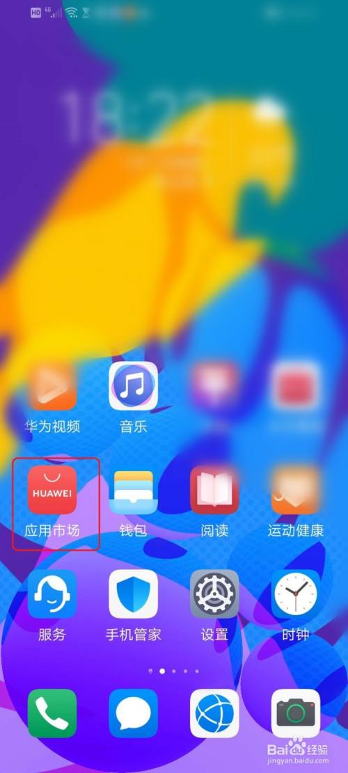 ●打开手机桌面首页,就会发现”应用市场“右上角的数字”17“,下面小编将以”应用市场“为例,介绍怎么取消数字角标。