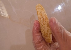 稍微晾凉后,整形成长宽度跟糯米船大小差不多就好。