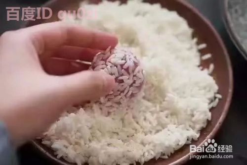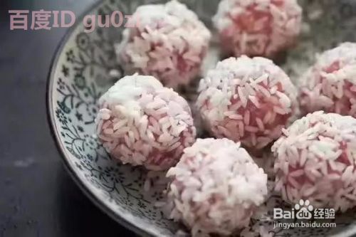 将腌制好的肉取出,做出团状,放入糯米中,翻滚吧!肉团!