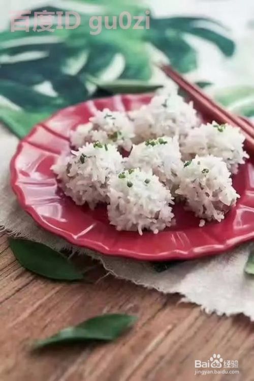 逐个做好肉米团饭团肉团后,放入蒸锅,蒸25分钟,点上切好的葱段,再蒙1分钟,就可以出锅了.