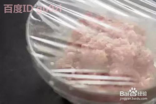 用薄膜包裹后,腌制20分钟,使用调料和肉,荸荠,充分结合,味道更鲜美,
