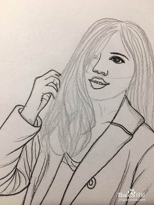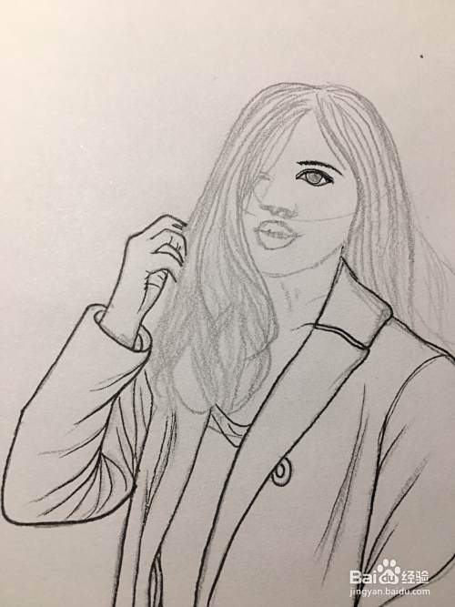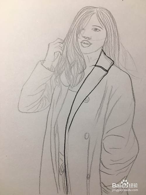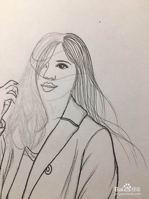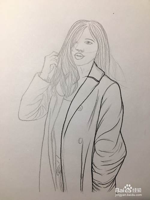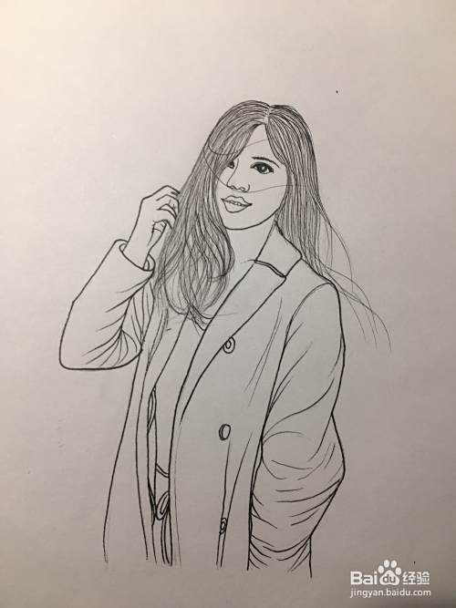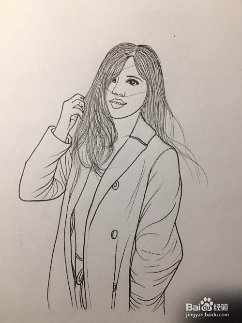 一个穿着冬衣的长发美丽女孩简笔线描画真正完成啦。最终效果如下: