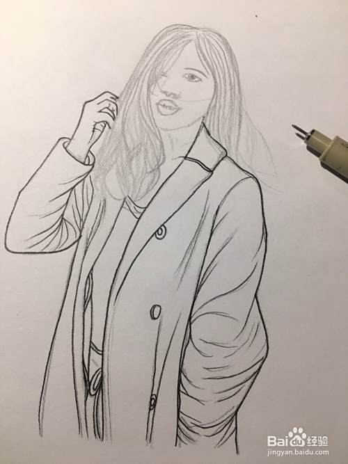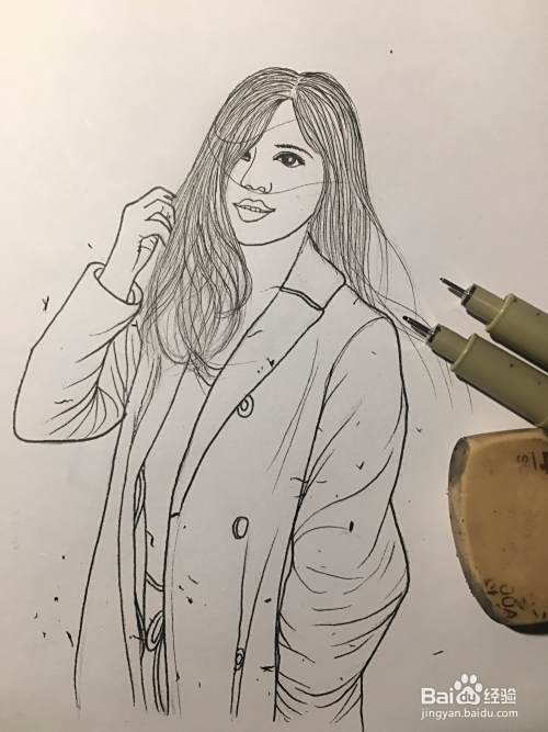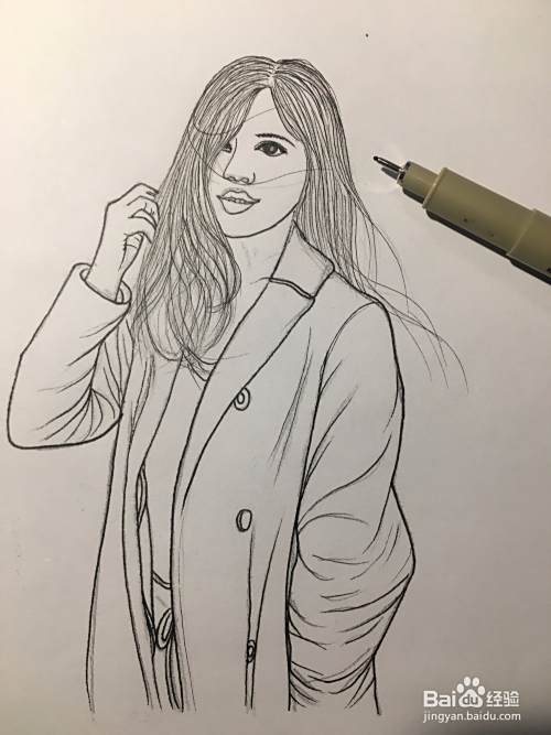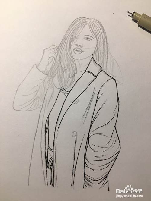 使用勾线笔沿着铅笔的痕迹重新勾勒一遍,