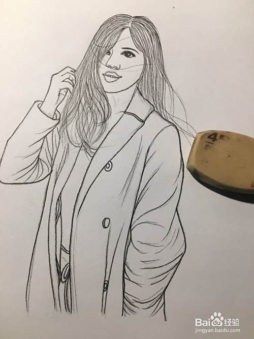 使用橡皮擦擦掉除了头发部位的其他部位铅笔的痕迹。
