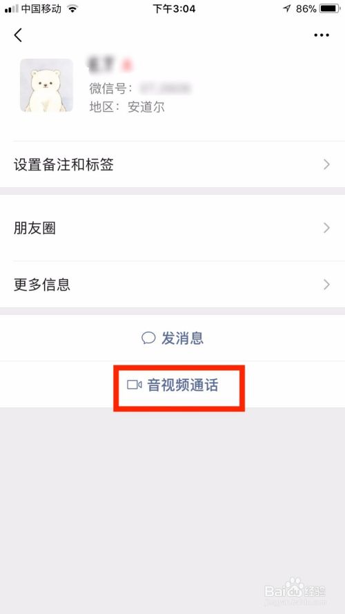 2. 找到并且男朋友的微信界面,点击一下“音视频通话”选项。