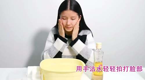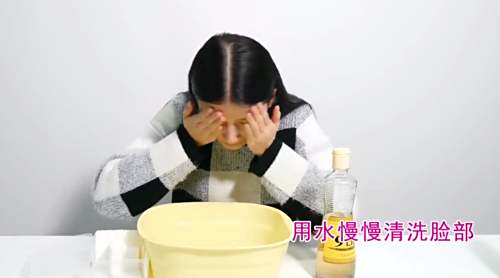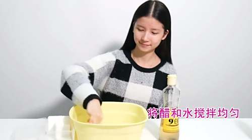 倒少量白醋到脸盆里,将醋和水搅拌均匀。
