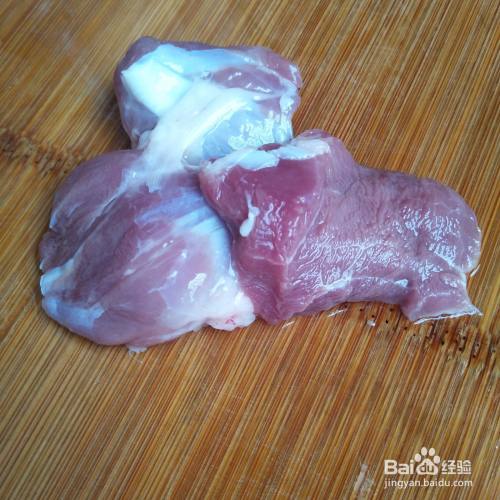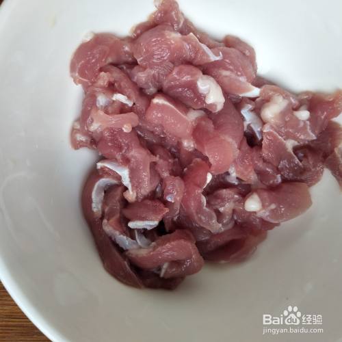新鲜前腿瘦肉30克,洗干净切丝放到碗中备用。
