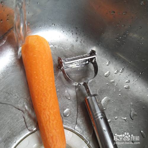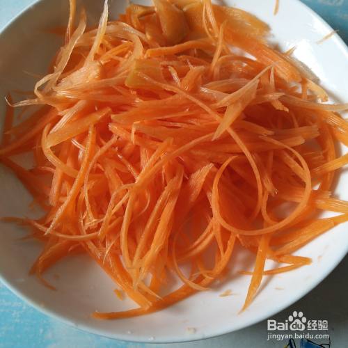 新鲜胡萝卜一个,去掉表皮后用瓜刨丝器刮成胡萝卜丝。