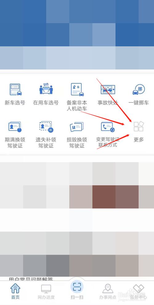 打开更多后,向下滑,找到【罚款缴纳】点击进入。我们可以在这里交罚款处理违章。位置如下图所示。
