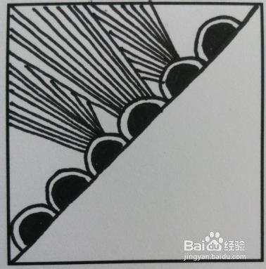 以中间的半圆为轴,画多条射线。