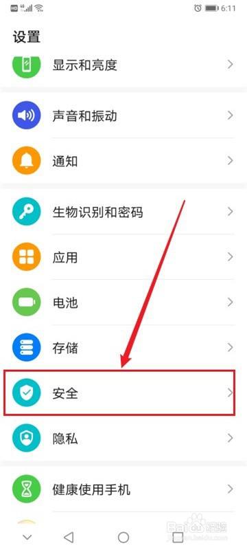 在设置列表中选择安全。
