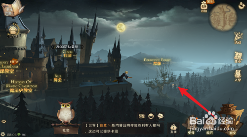 在城堡上空,往禁林方向飞去,并找到海格小屋。
