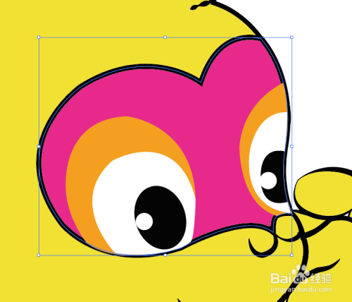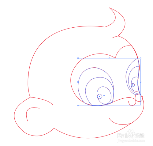 6、用紫色、土黄色、黑、白分别填充猴子的眼睛,效果如图。