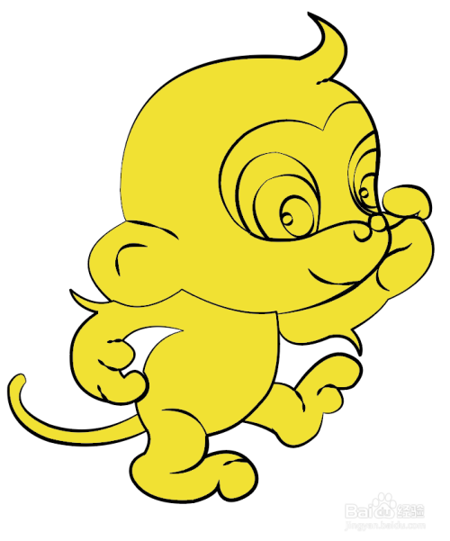 5、用淡黄色填充猴子的身体部分,效果如图。