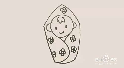 襁褓里面用两条弧线画出包裹他的感觉,注意弧度的变化和位置。