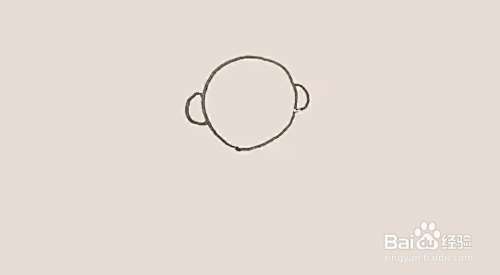 在圆形两边画上半圆形来表示他的耳朵。