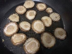 平底锅倒入薄薄一层油,把香菇两边煎焦嫩