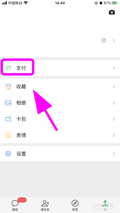 进入我页面,点击【支付】;
