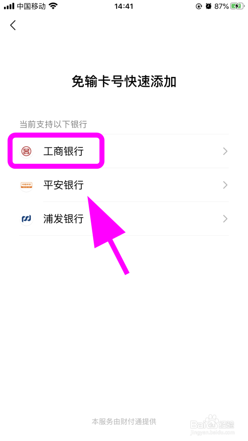 跳转银行选择,点击选中要添加的银行,以【工商银行】为例;
