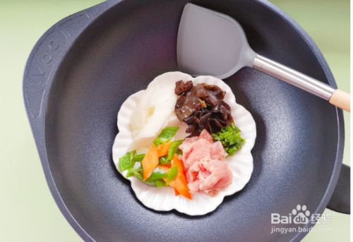 准备好食材,山药和胡萝卜切成菱形状,不会切也可以顺势切,然后将山药用水焯一下,肉用淀粉、少许盐腌制一会