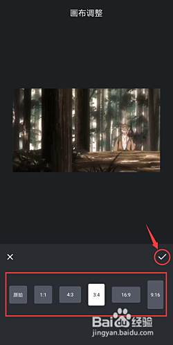 弹出新的页面后,在诸多比例中选择需要的视频比例。设置完成后点击“√”,返回画布调整页面,点击“画布”功能。