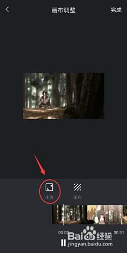 在画布调整页面中,有“比例”和“画布”两种功能。在设置背景画布前,需要点击“比例”功能,设置视频比例。